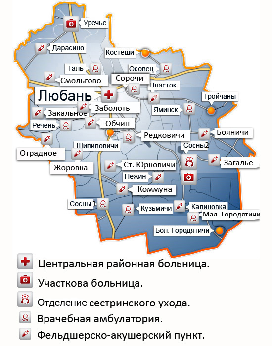 Основной задачей развития здравоохранения Любанского района является улучшение показателей здоровья населения на основе дальнейшего повышения доступности и качества медицинских услуг, обеспечение за счет бюджетных средств единых социальных стандартов медицинской помощи каждому человеку независимо от его места жительства; обеспечение доступности медицинской помощи как для городского, так и для сельского населения, включая эффективные, безопасные и качественные лекарственные средства.